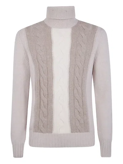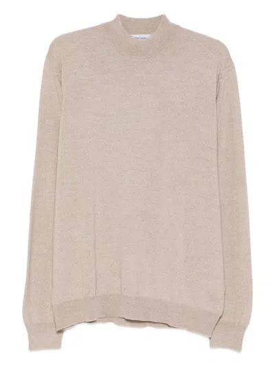Half Neck Sweater In Beige Virgin Wool In Brown