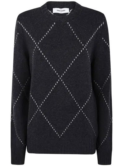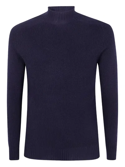 Navy Blue Cashmere Crew Neck Sweate In Multi