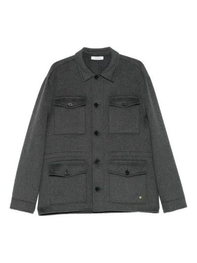 Buttoned Flap-pocket Shirt Jacket In Gray