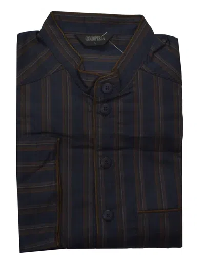 Men's Striped Cotton Pajama Top In Navy/brown In Blue