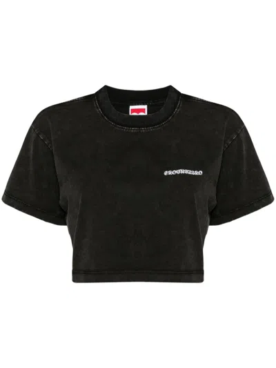 Logo-print Cropped T-shirt In 黑色