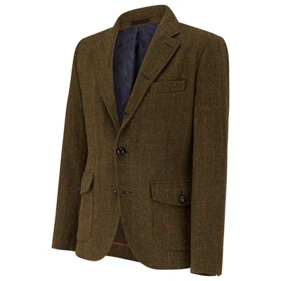 Men's Brown Allenby Wool Tweed Blazer - Tan Windowpane