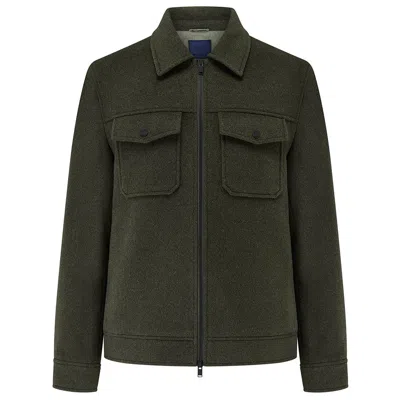 Men's Green Steele Wool Blend Zip Front Short Jacket - Khaki In Black