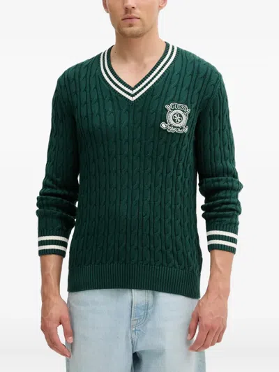 Cable-knit V-neck Sweater In Green