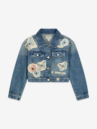 Kids' Girls Flower And Butterfly Denim Jacket In Blue