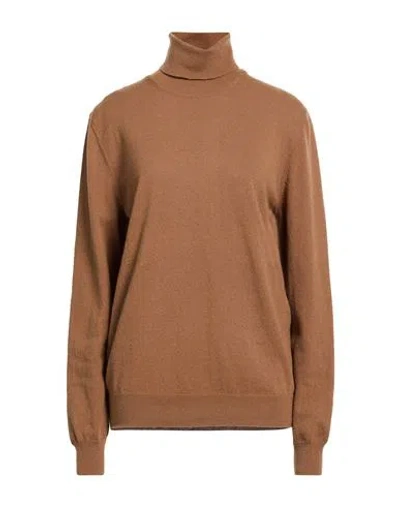 Woman Turtleneck Light Brown Size 16 Merino Wool, Cashmere In Neutral