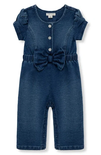 Babies' Kids Bow Front Puff Sleeve Cotton Blend Chambray Jumpsuit In Blue
