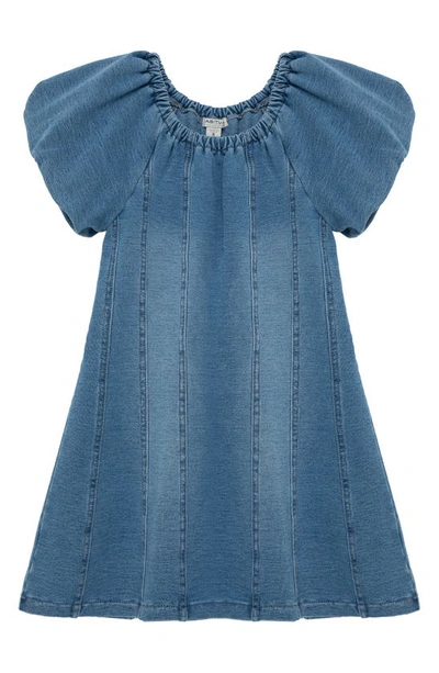 Kids Kids' Puff Sleeve Denim A-line Dress In Med Stone