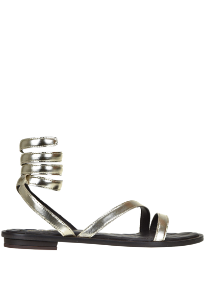 Metallic Effect Leather Sandals In Gold