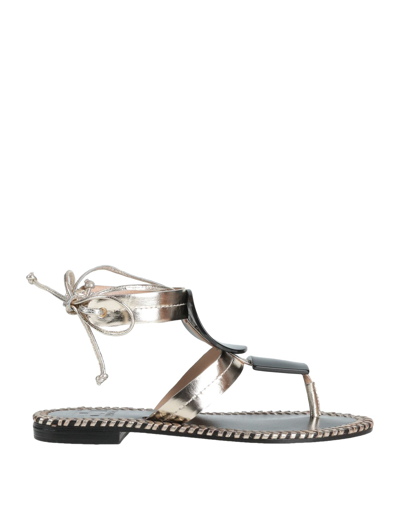 Woman Toe Strap Sandals Platinum Size 10 Soft Leather In Grey