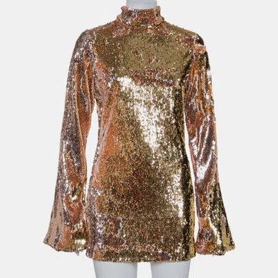 Pre-owned Gold Sequin Embellished Knit Bell Sleeve Detail Mini Dress S