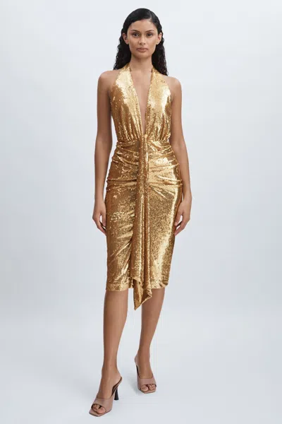 Gold Halterneck Plunge Dress