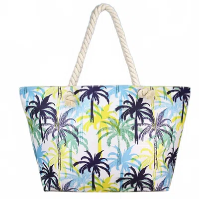 Women's Tropical Palm Tree Print Beach Bag Tote In Blue
