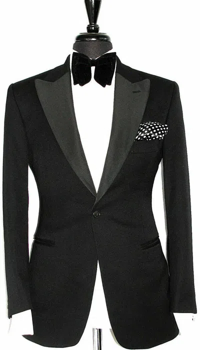 Pre-owned Men Black Smoking Jacket Elegant Designer Quilted Lapel Party Wear Blazer Uk