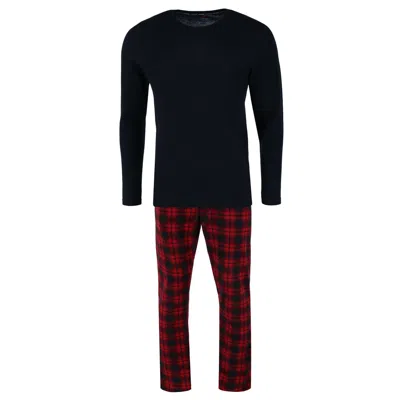 Men's Flannel Button Down Pajama Sleep Set In Red