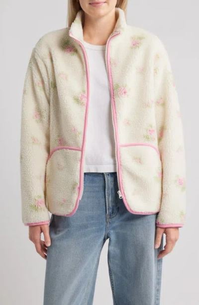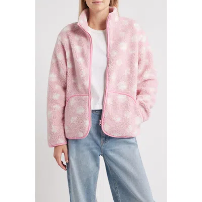 Sienna Ditsy Daisy Front Zip Fleece Jacket In Pink