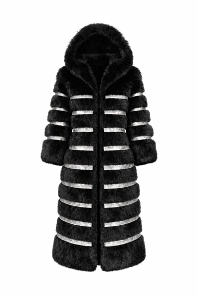 Women's Black Crème De La Crème Noir Extra Long Hooded Faux Fur Coat By Dani Watanabe