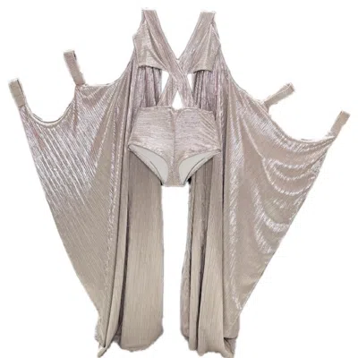 Women's Lemuria Bodysuit Silver Dress With Cape By Dani Watanabe