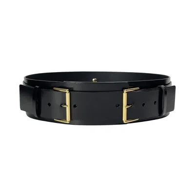 Women's Black Wide Structural Leather Belt