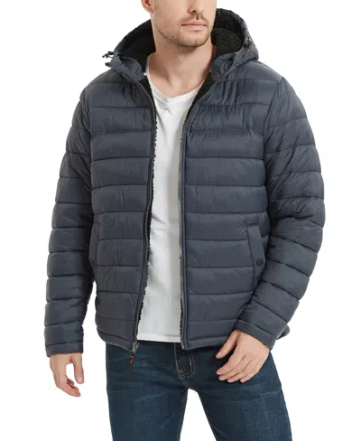 Men's Sherpa Lined Hooded Puffer Jacket In Carbon