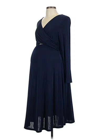 Tie Dress Smocked Maternity Midi Dress In Navy In Blue