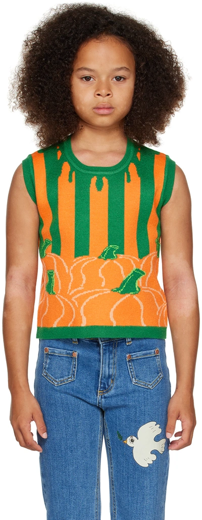 Ssense Exclusive Kids Orange & Green Ami Vest In Halloween Orange