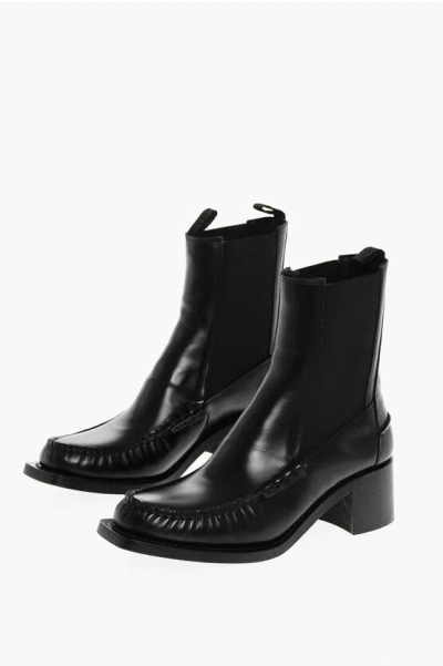 Leather Chelsea Boots With Square Toe 5cm In Black
