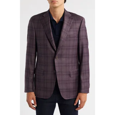 Milano Contemporary Fit Purple Plaid Super 130s Wool Sport Coat In Blue
