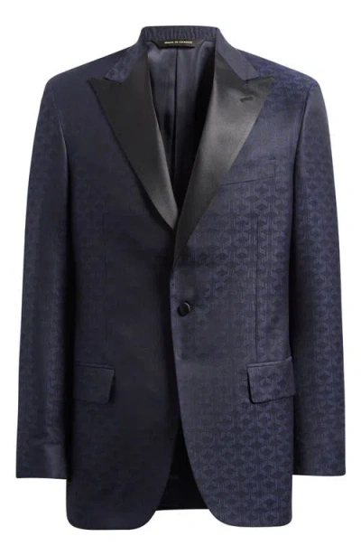 Navy Geometric Jacquard Wool & Silk Dinner Jacket In Blue