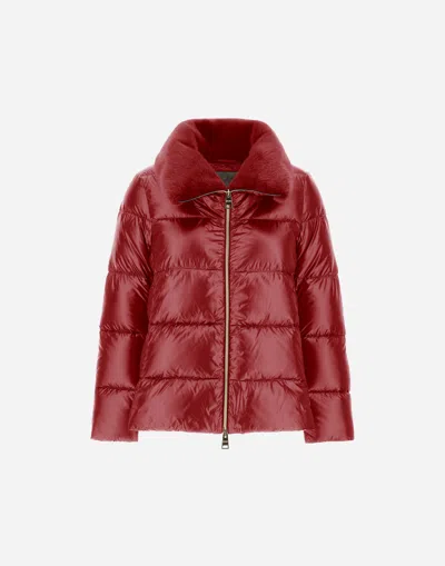 Jacket In Nylon Ultralight And Lady Alternative Fur In Red