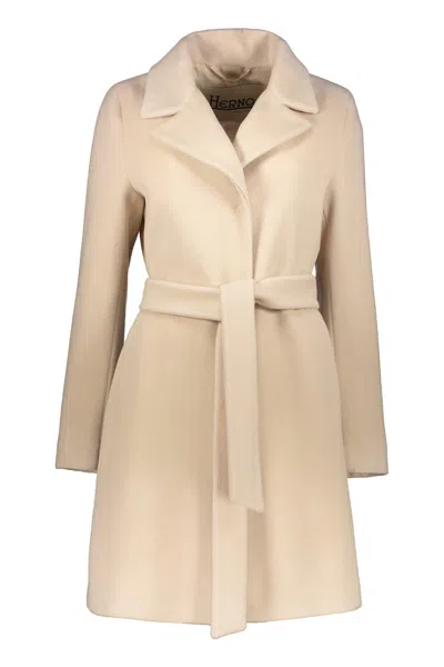 Beige Elegant Coat With Belt In Neutral