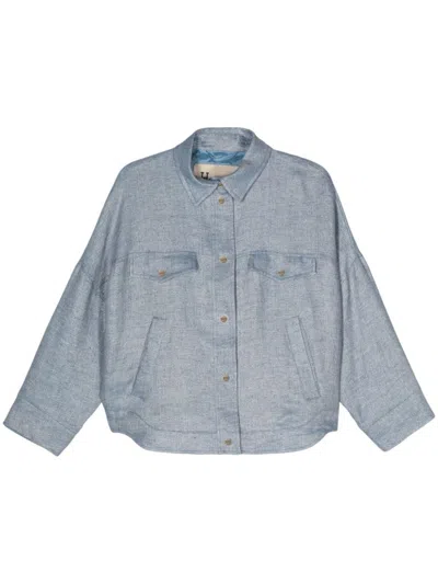 Logo-engraved Buttons Herringbone Jacket In Blu