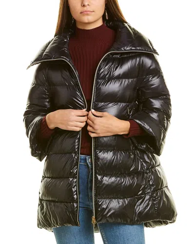 Amelia Water-resistant Ultralight Nylon A-line Puffer Jacket In Black
