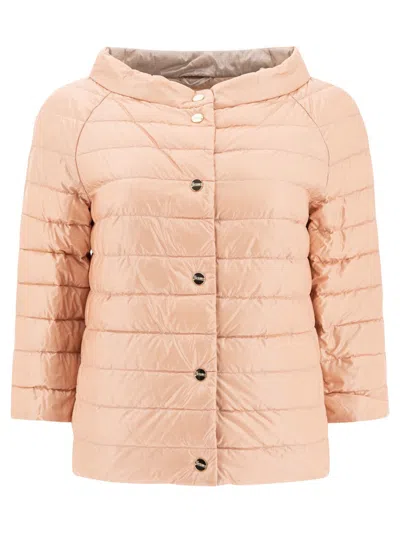 Powder Pink Nylon Reversible Down Jacket In Brown