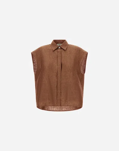 Concealed-fastening Sleeveless Shirt In Brown
