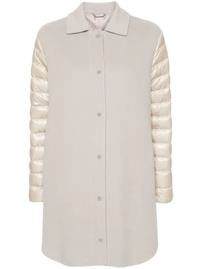 Panelled Puffer Coat In Beige