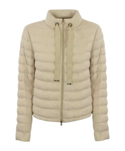 Long-sleeved Down Jacket In Neutral