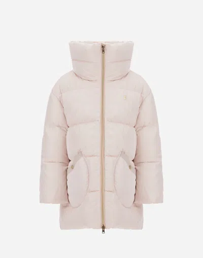 Kids' White Down Jacket For Girl With Logo In Bianco