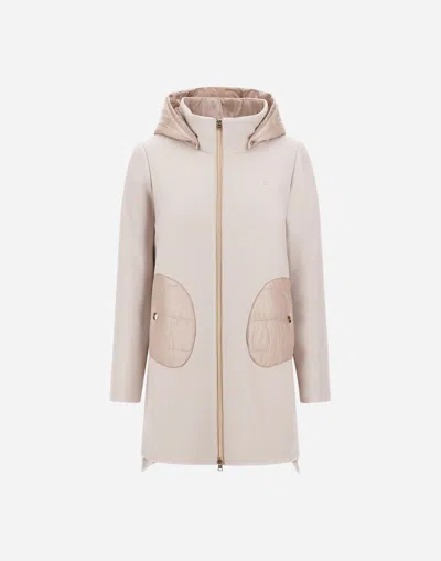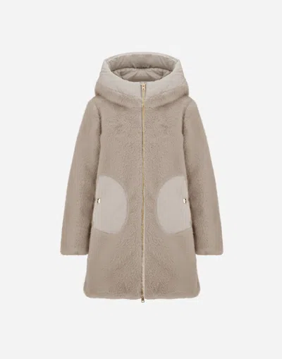 Kids' Hooded Coat In Ecowool And Nylon Ultralight In Neutral
