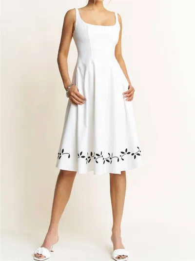Embroidered Linen Flare Midi Dress In White