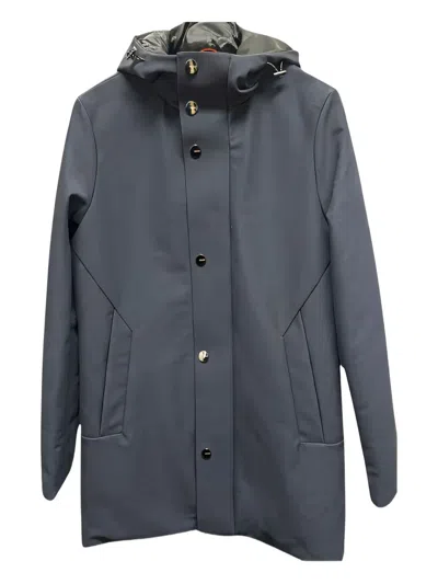 Button-fastening Hooded Coat In Blue