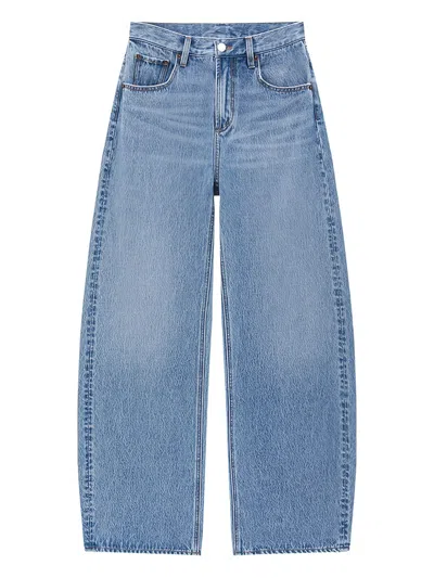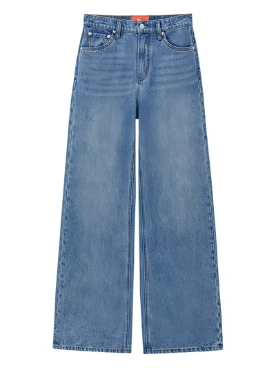 Ocean Wave Panelled Denim Maxi Skirt In Blue