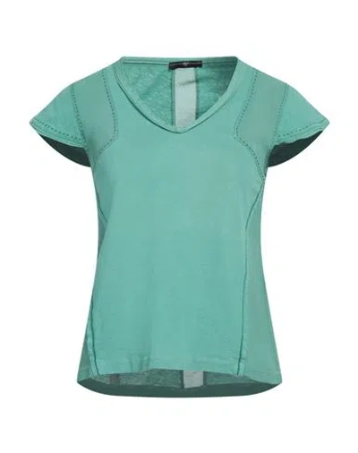Woman T-shirt Emerald Green Size L Cotton, Linen, Rayon