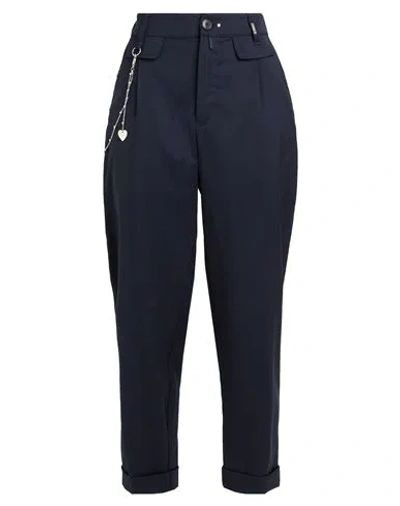 Woman Pants Black Size 12 Cotton, Virgin Wool, Rayon In Blue