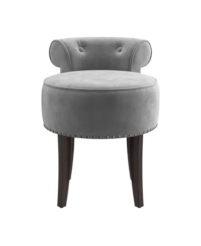 22.5" Wood And Upholstered Lena Vanity Stool In Gray