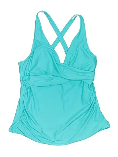 Swimsuit Top Teal Solid Pattern Swimwear In Blue