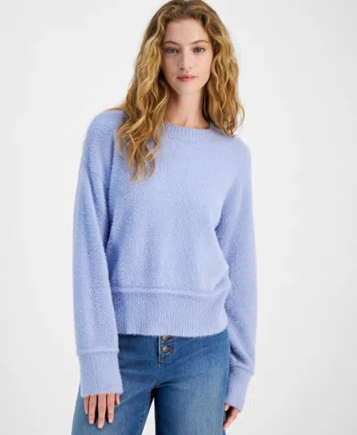 Juniors' Cozy Drop-shoulder Eyelash Lurex Crewneck Sweater In Frozen Perri