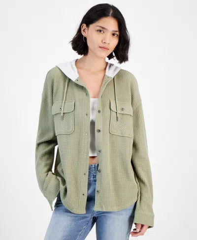 Juniors' Hooded Waffle Knit Shacket In Tea Combo
