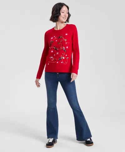 Women's Kitten Sleigh Crewneck Sweater, Created For Macy's In Red