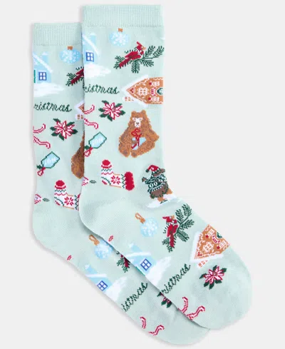 Women's Holiday Crew Socks, Created For Macy's In Blue